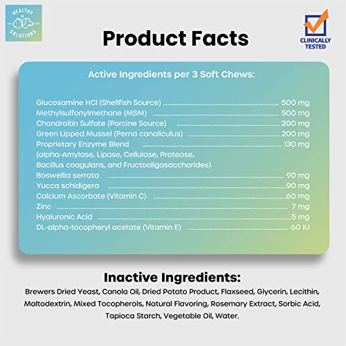 🗸 VETERINARIAN FORMULATED with high-quality ingredients that support healthy mobility, cartilage and joint health, including glucosamine, chondroitin and MSM. — 60 Soft Chews