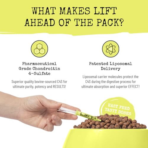 UNIQUE FORMULA. UNRIVALED RESULTS: 100% natural, drug-free, and without CBD. Our powerful pharmaceutical-grade chondroitin 4-sulfate formulation offers unrivaled joint repair benefits without needing canine aspirin or pain masking medications. A superior anti-inflammatory relief medication. In one tasty, weekly dose, Lift Canine Relief Solution is the supplement all breeds of dogs love.*