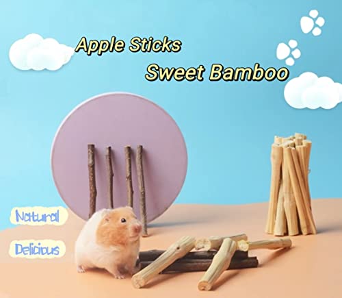 【Scientific Collocation Feeding】100% natural sweet bamboo and apple wood sticks,rich in dietary fiber, xylose, vitamin A&C, low in calories, help digestion, no additives, harmless to you and your pet.Please be careful not to overfeed your pets, preferably 1 or 2 a day, or every 2 to 3 days.