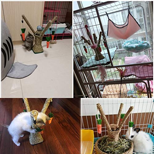 Hamiledyi Pet Rabbit Toy Tree Bunny Fun Chew Toy Rattan Grass Scratcher Climbing Tree Play Carrot Toy for Small Animal