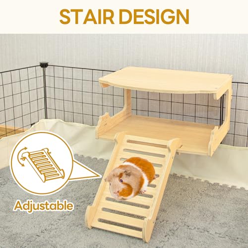 OiiBO Guinea Pig House Hideout, Wooden Guinea Pig Platform with Stairs, Small Animal Bed Castle Habitats for Hamsters Bunny Chinchillas Playing & Sleeping Hut (Rectangle)
