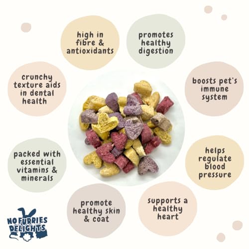 [CRUNCHY, BITE-SIZED & MADE IN SMALL BATCHES] – No Furries Delights is a Canadian-based small business that specializes in creating wholesome and intentional small animal treats and chew toys. Our treats are made crunchy and bite-sized to satisfy your pet’s instinct to chew while providing better control over their sugar intake. Crafted in small batches, our treats are packaged in a resealable bag to ensure maximum freshness