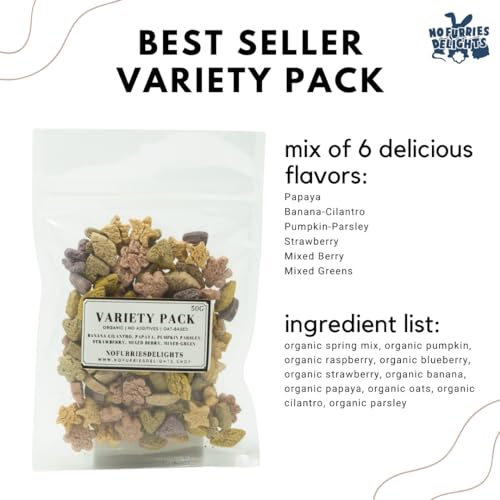 [FORMULATED FOR SMALL PETS] – Each package contains 6 delicious flavors: papaya, strawberry, pumpkin parsley, banana cilantro, mixed berries, and mixed vegetables. Each flavor is intentionally chosen for its taste and health benefits for rabbits, hamsters, guinea pigs, chinchillas, rats, mice, gerbils, and other small animals. This is a perfect choice for rodents who are picky eaters or if you are unsure which flavor your pet will enjoy the most. A 50g package contains approximately 50-55 pcs
