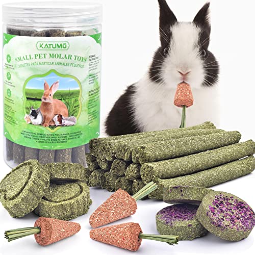 KATUMO 24PCS Rabbit Chew Treats, Healthy Bunny Treats Natural Timothy Hay Sticks Rabbit Chew Toys Small Animal Treats